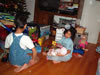 A, eating her hot dog with her new friends |